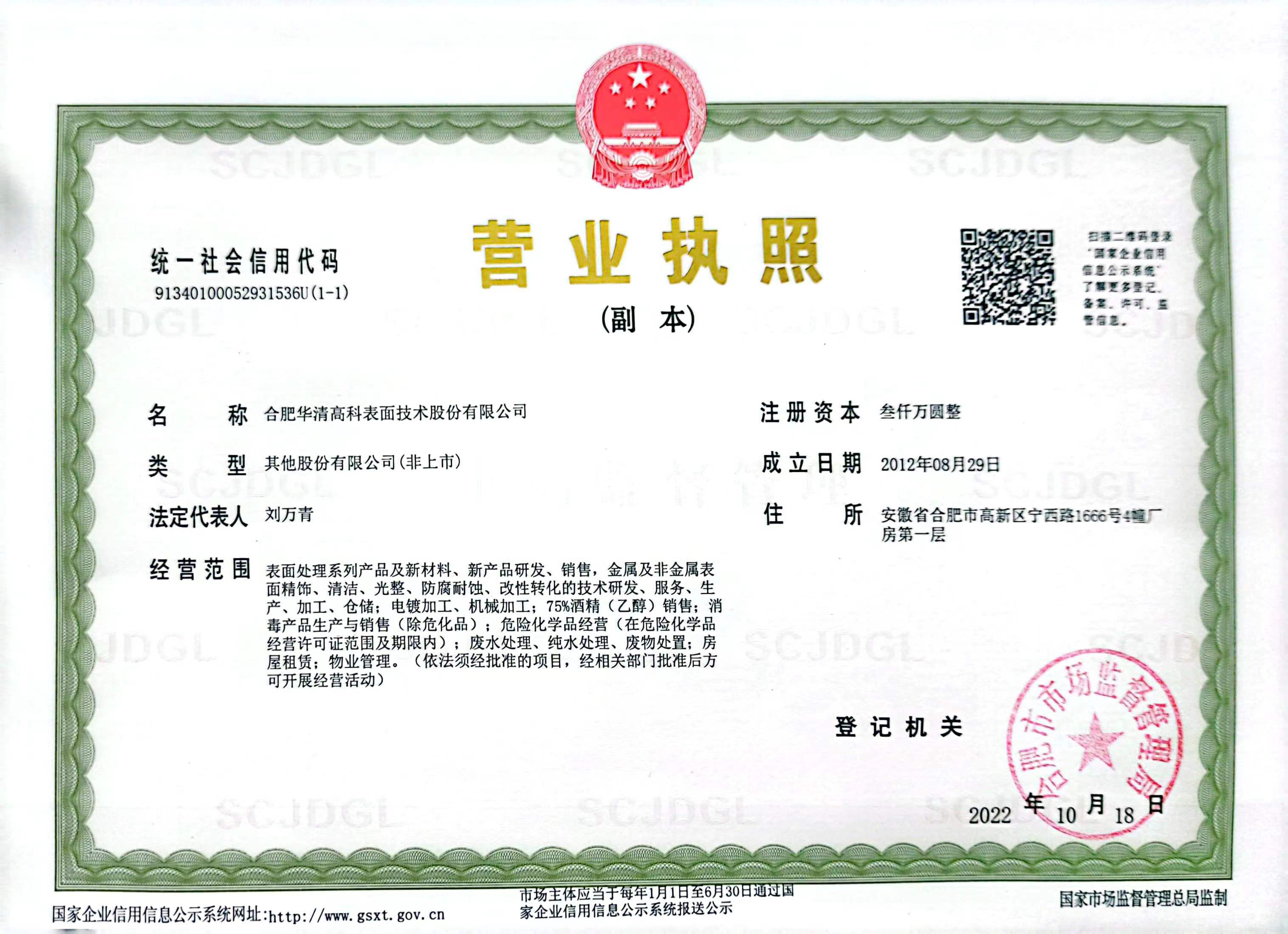 合肥華清高科表面技術股份有限公司位于合肥市國家級高新技術產業開發區,總占地面積560畝。長期從事金屬及非金屬表面材料防護方面科研開發工作,特別是鎂合金高防腐及功能化,碳纖維金屬化、金屬緩蝕方面有很高理論研究和很強科研能力。主營業務為:表面處理新材料、新能源液冷新材料、航空航天零部件加工、電子電鍍加工、表面處理功能化裝備研發、生產、加工及銷售一體的高新技術企業。產品主要應用于航空航天、軍工、新能源、通信、3C、5G、低空飛行器、電子半導體等領域。